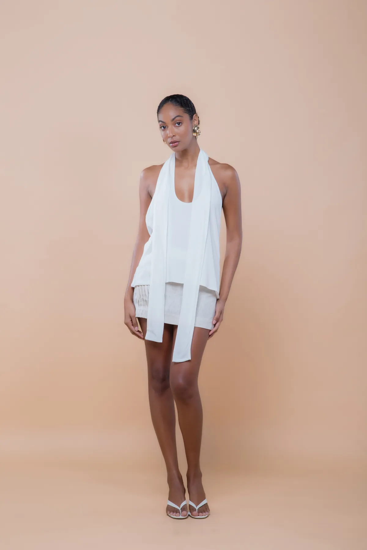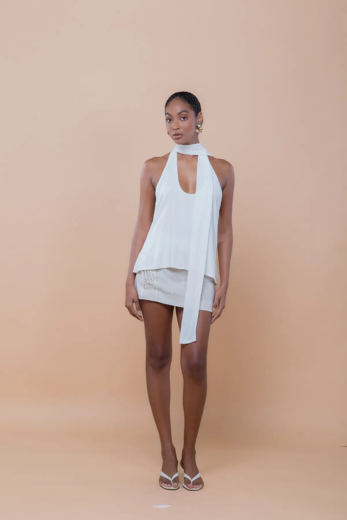 A Blusa Lua vem acompanhada de um echarpe embutido na peça que pode ser amarrado de múltiplas maneiras ou usado solto, deslizando suavemente sobre o corpo. Com decote amplo nas costas, o design contemporâneo em crepe de viscose oferece caimento leve, movimento sutil e um toque sofisticado para as mais diversas composições.