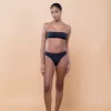Calcinha de biquíni drapê, levemente mais larga na lateral com franzido.