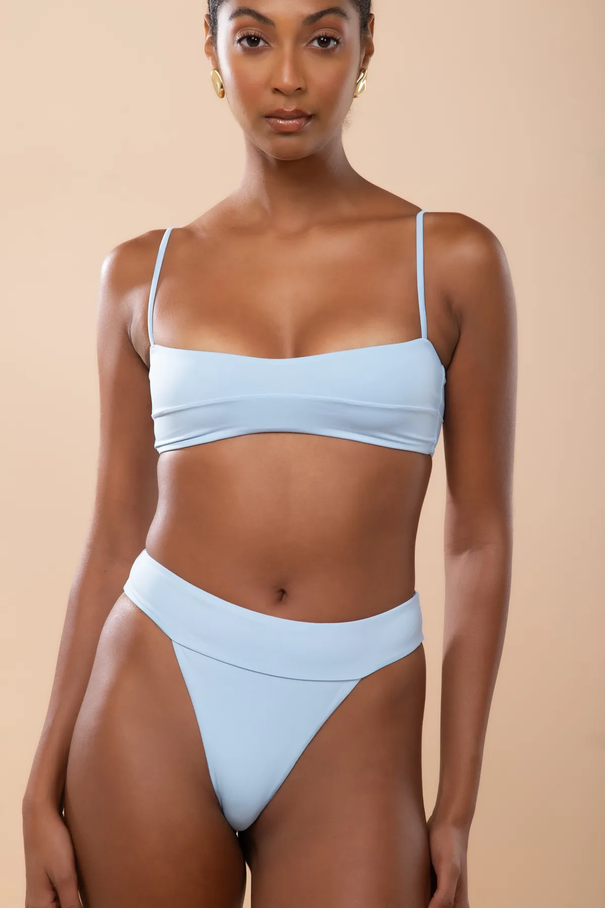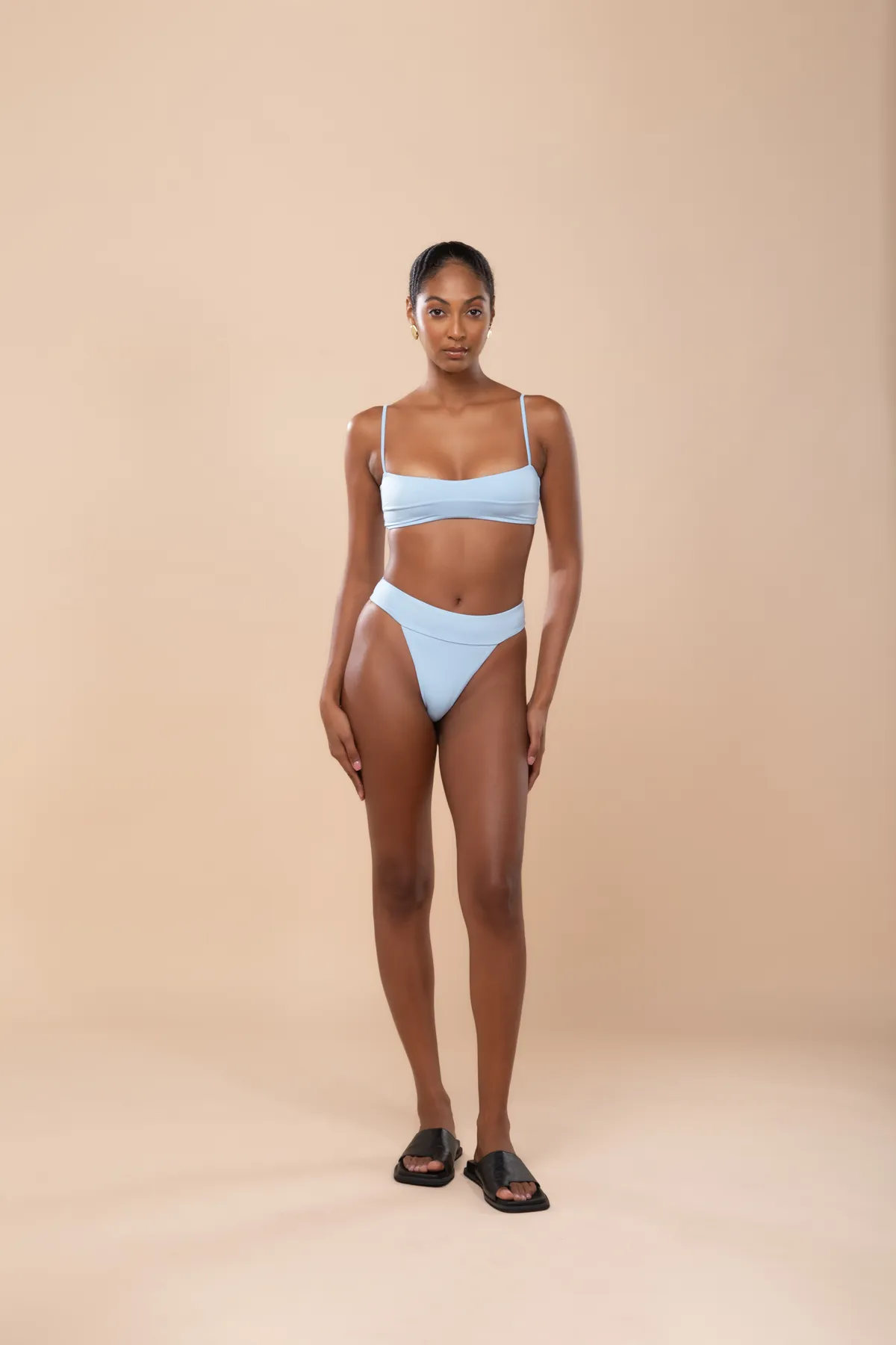 Calcinha alta com pala larga. Design moderno e confortável.