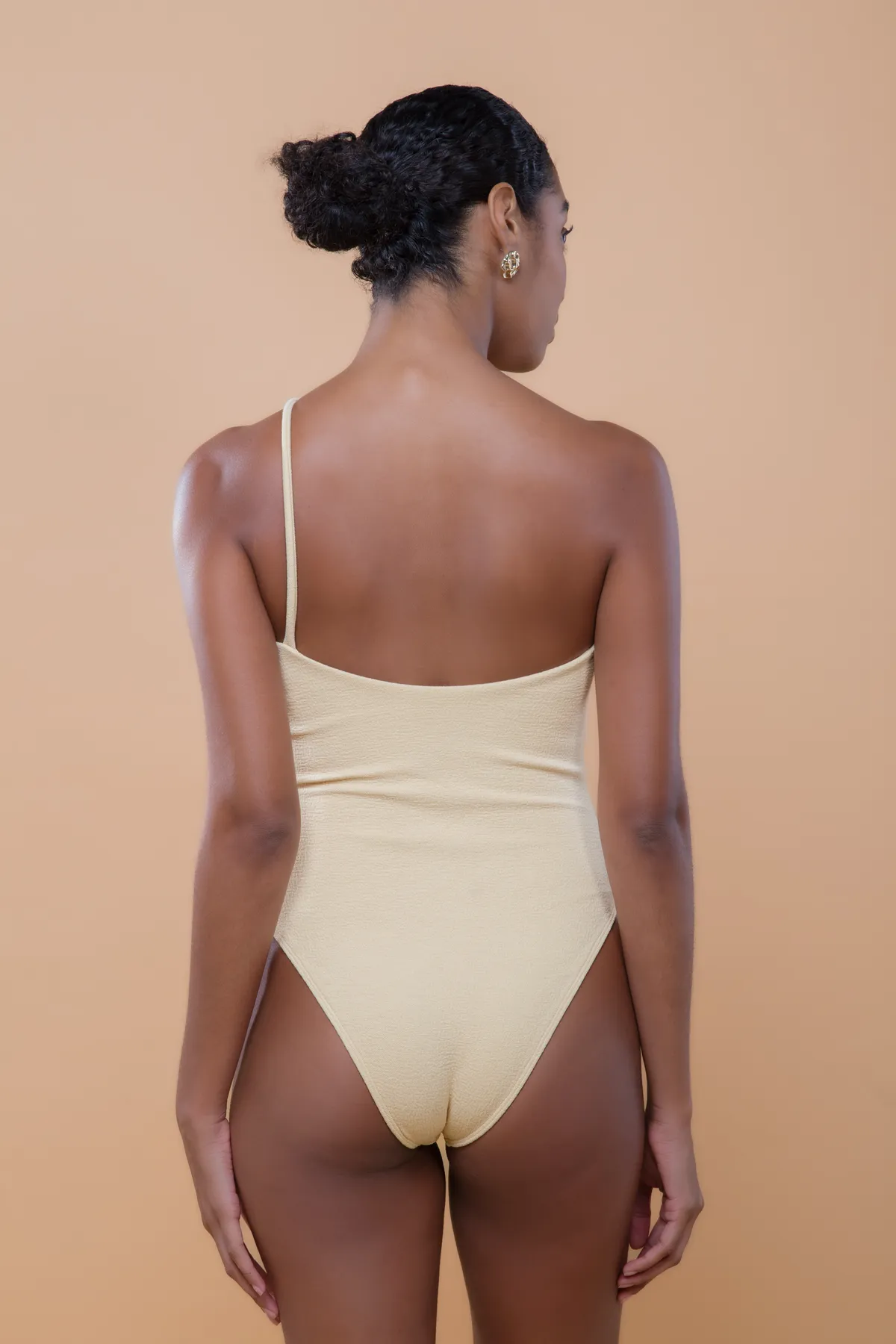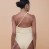 O Maiô Amanda é assimétrico, de um ombro só, com alça fina e minimalista que pode ser usada atravessando o colo ou apoiada no ombro. Apresenta decote elegante nas costas e cavas médias, unindo estilo, conforto e versatilidade em uma peça contemporânea. Feito em malha biodegradável com textura e forro leve.