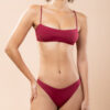 O nosso Top Helena ganha uma versão com alças finas e paralelas, com regulador. Top camiseta, com recorte central. Modelagem versátil, transita entre a praia, esporte e em ocasiões urbanas. Tecido em dupla camada.