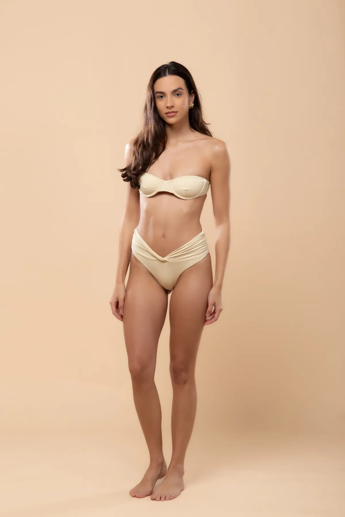 O nosso Top Meia Taça ganha uma versão sem alças, tomara que caia. Possui regulagem nas costas, abraçando várias medidas e se adaptando aos diversos corpos, proporcionando sustentação. Possui aro interno para sustentar e modelar. Não possui bojo. Tecido em dupla camada.