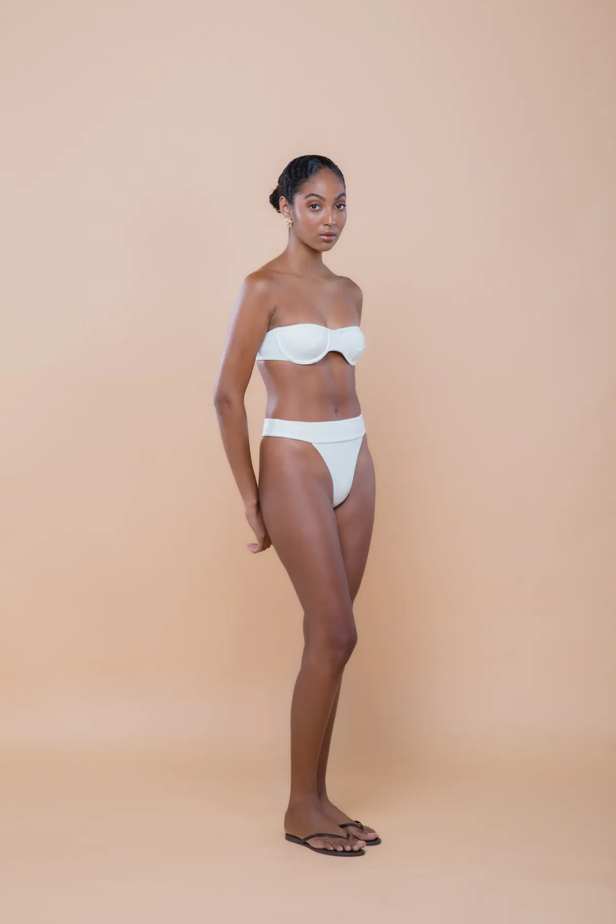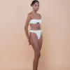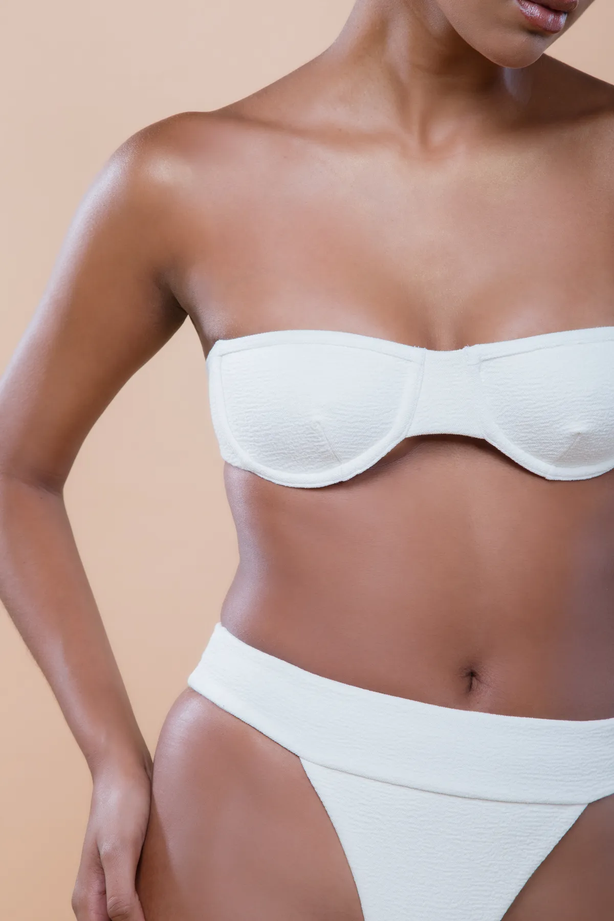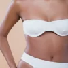 Top meia taça tomara que caia possui decote estreito e arredondado, com aro interno que promove caimento. Possui alças largas e paralelas, com regulador em metal dourado nas costas para ajuste perfeito. O modelo sem alças promove todo o charme da peça com design atemporal. Feito em malha biodegradável com textura e forro leve.