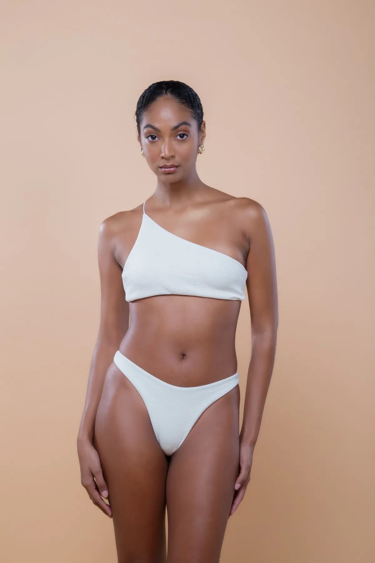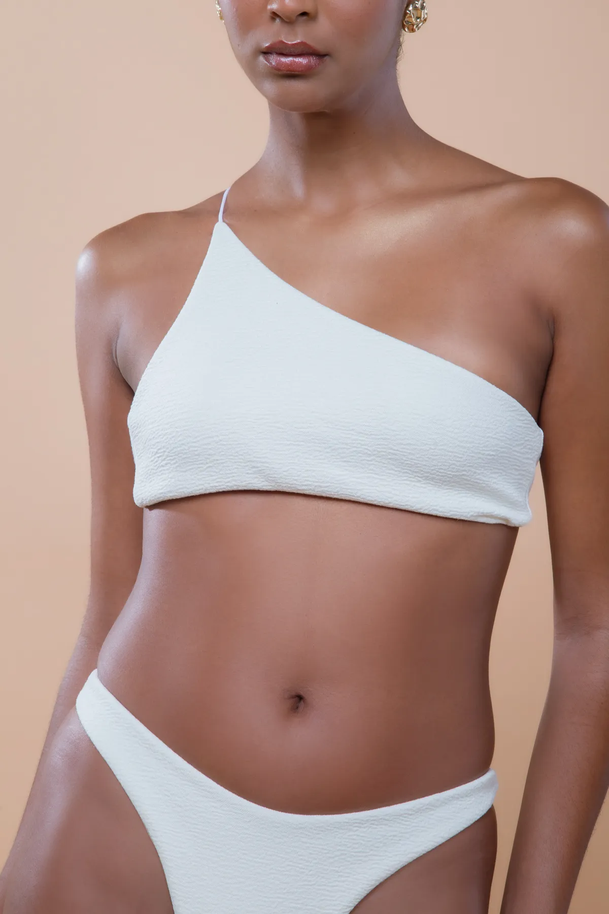 Top assimétrico de um ombro só, com fina alça elástica. De visual minimalista e design contemporâneo, é versátil e promove a sofisticação do mergulho a composições além mar. Feito em malha biodegradável com textura e forro leve. Design exclusivo e autentico criado em colab com a The Finds e se tornou um clássico best-seller.