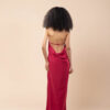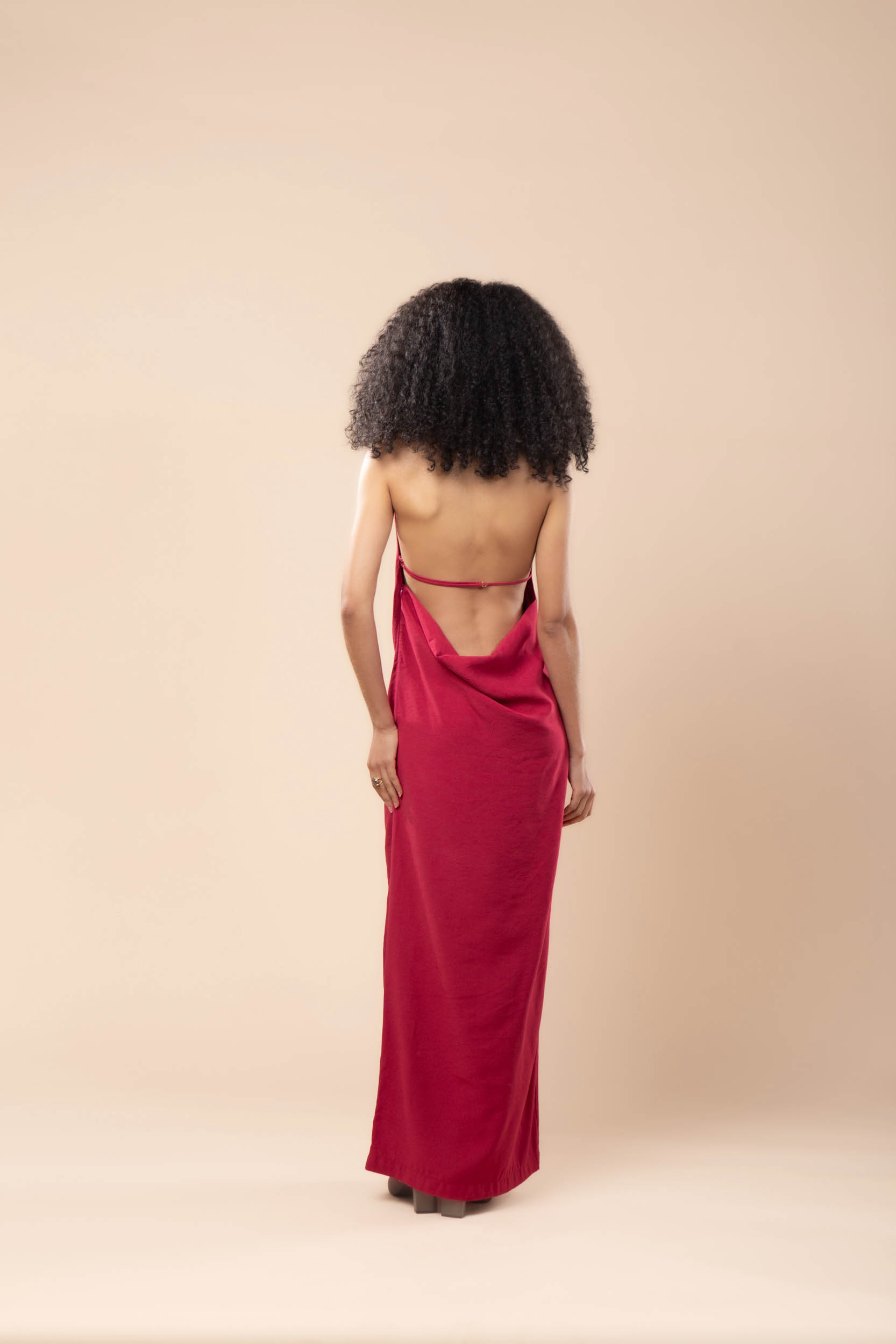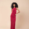 O Vestido Antônia possui um drapeado e decote degage na frente, e de forma ampla nas costas, unindo modernidade e sofisticação. Possui regulador nas costas e fechamento em botão na parte de trás do pescoço.